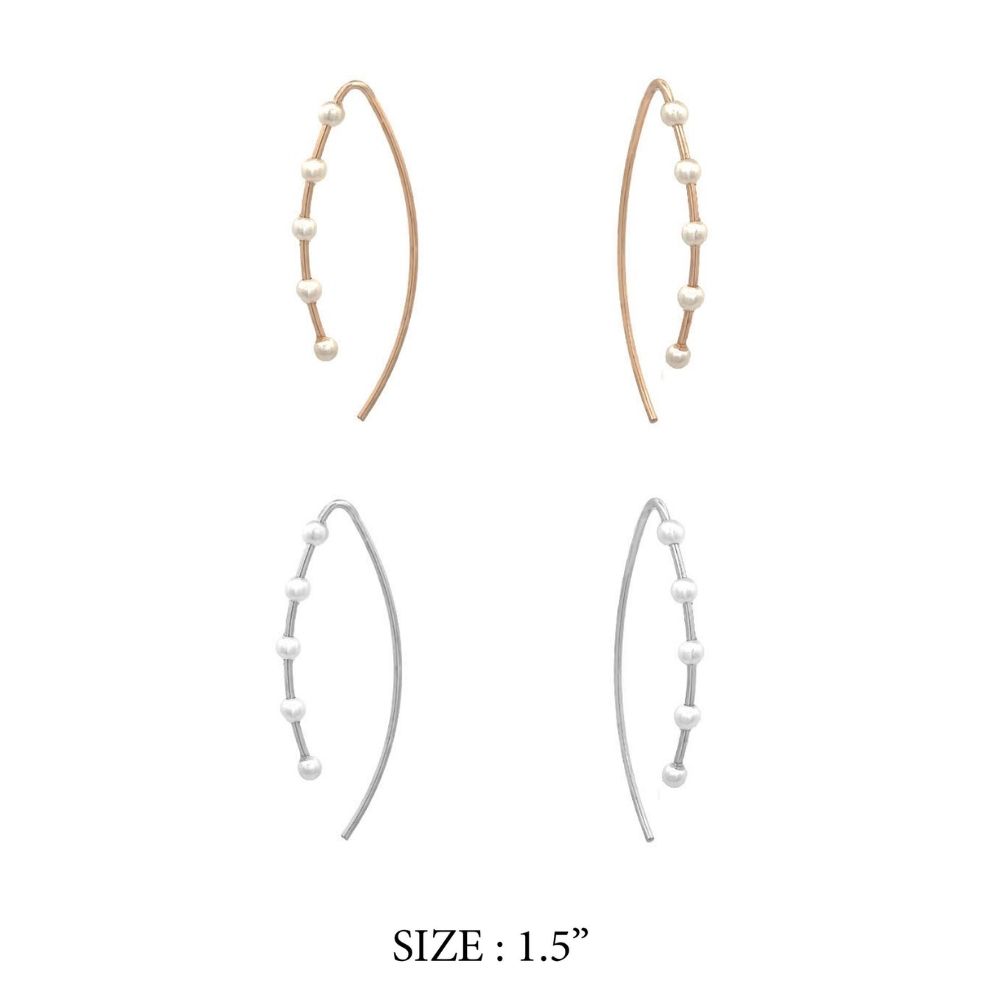 1.25 INCH PEARL WIRE THREADER PIERCED EARRINGS. GOLD, SILVER. SOLD IN SETS OF 2 ONLY