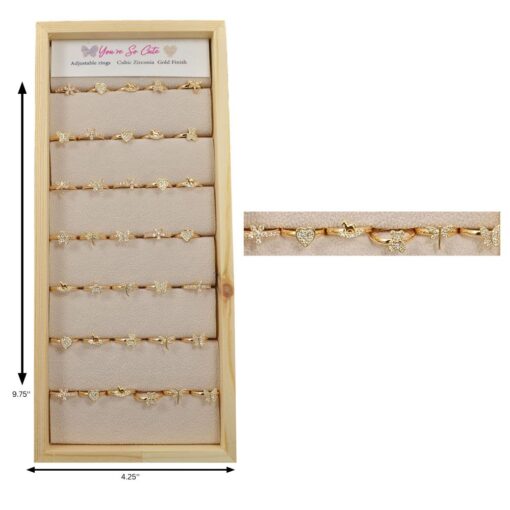 36-PIECE KIDS ADJUSTABLE CZ RINGS WITH DISPLAY