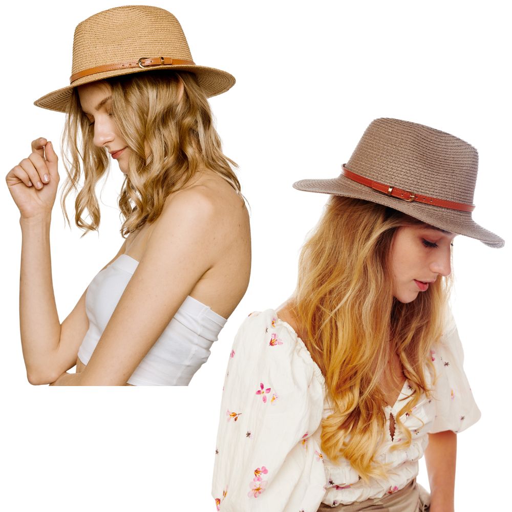 ADJUSTABLE STRAW WIDE BRIM SUMMER HAT WITH BAND. NATURAL, TAUPE