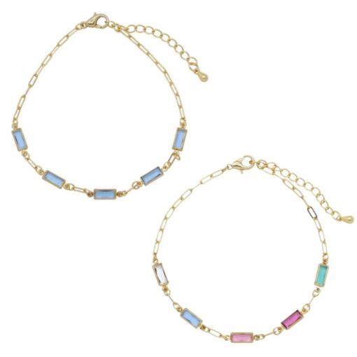 BAGUETTE CRYSTAL STATION BRACELETS. BLUE, MULTI. SOLD IN SETS OF 2 ONLY. SEE 41210 FOR MATCHING BRACELETS