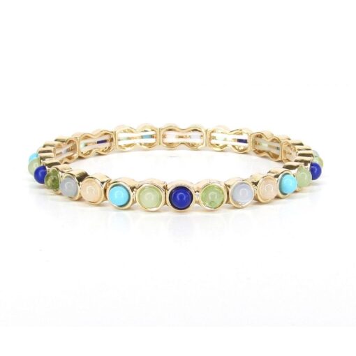 BLUE & GREEN BEZEL SET ROUND STONE STRETCH BRACELET. SEE 40225 FOR MATCHING NECKLACE SET