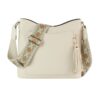 CREAM GUITAR STRAP CROSSBODY WITH FRONT POCKET. 11.25X10.5X3.5