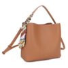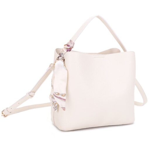 CREAM SCARF ACCENT DUAL STRAP BUCKET BAG. 9.5X9X4.5
