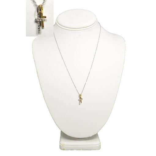DAINTY TWO TONE DOUBLE CROSS PENDANT NECKLACE WITH CRYSTALS