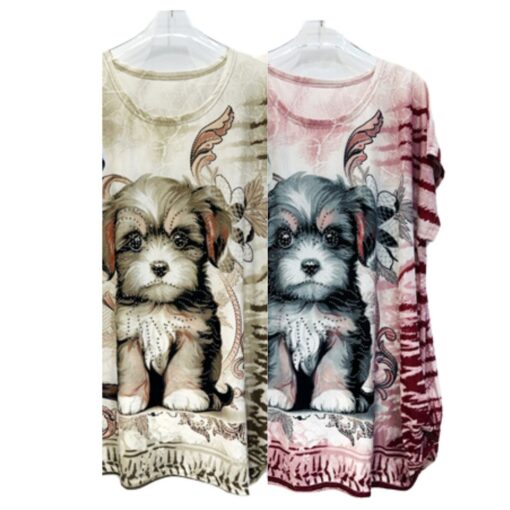 DOG EMBELLISHED SHORT SLEEVE TUNIC. BROWN, PINK. SOLD IN SETS OF 2 ONLY. PRE-ORDER ONLY – AVAILABLE EARLY MARCH 2026