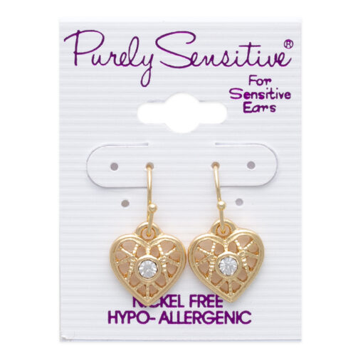 Discover the charm of understated elegance with the Purely Sensitive #14 earrings, a testament to classic beauty that complements any ensemble. These enchanting heart-shaped earrings are meticulously crafted to cater to those with sensitive ears, ensuring both style and comfort without compromise. Each gold-toned piece presents an intricate filigree design, lending a touch of vintage grace to the silhouette, while the central shimmering crystal radiates timeless sophistication. Hypoallergenic by design, these earrings make a thoughtful gift or a personal treasure for everyday wear and special occasions alike. Adorn your ears with Purely Sensitive #14 and embrace the allure of sophistication at its finest.