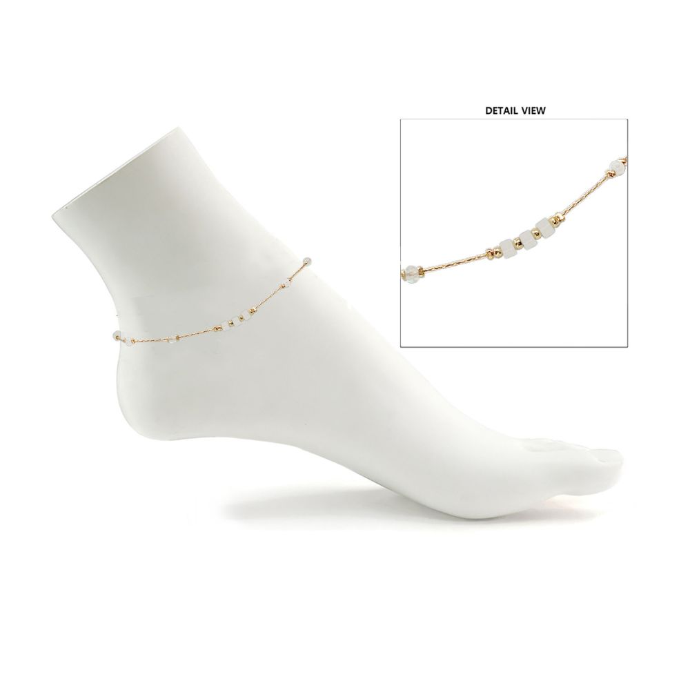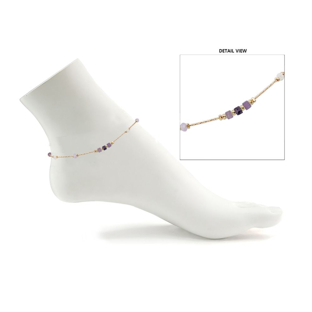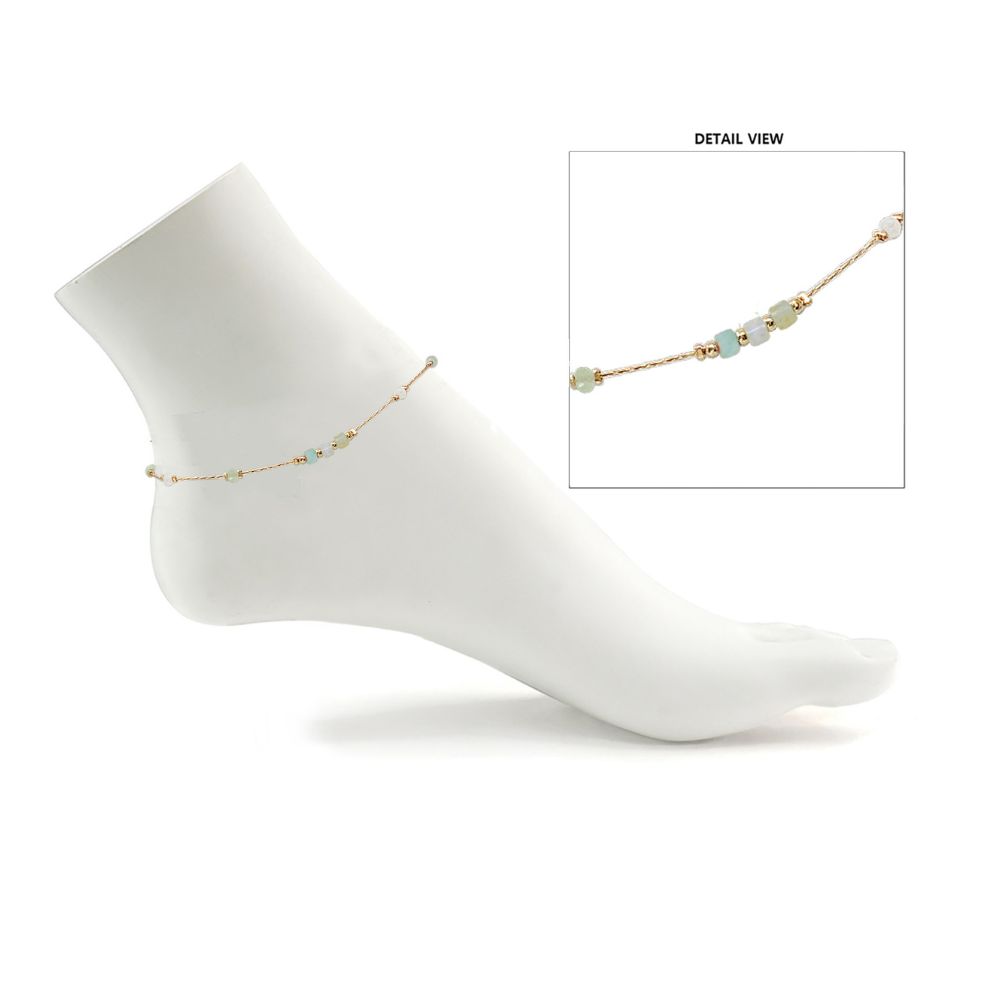 GOLD CHAIN & GEMSTONES ANKLET. MINT, LAVENDER, WHITE. SOLD IN SETS OF 3 ONLY.