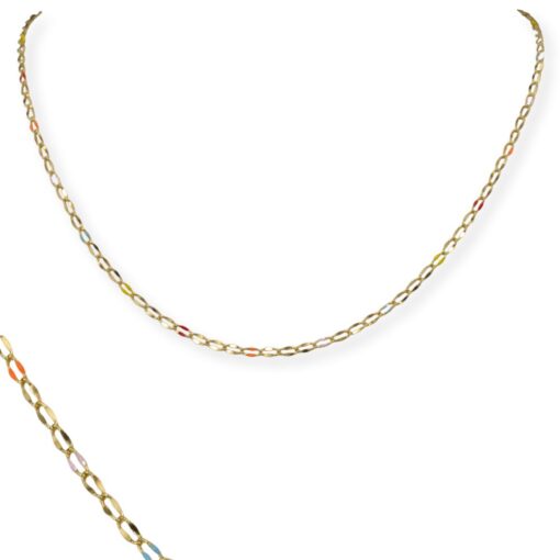 GOLD DAINTY CABLE CHAIN WITH MULTI ENAMEL NECKLACE