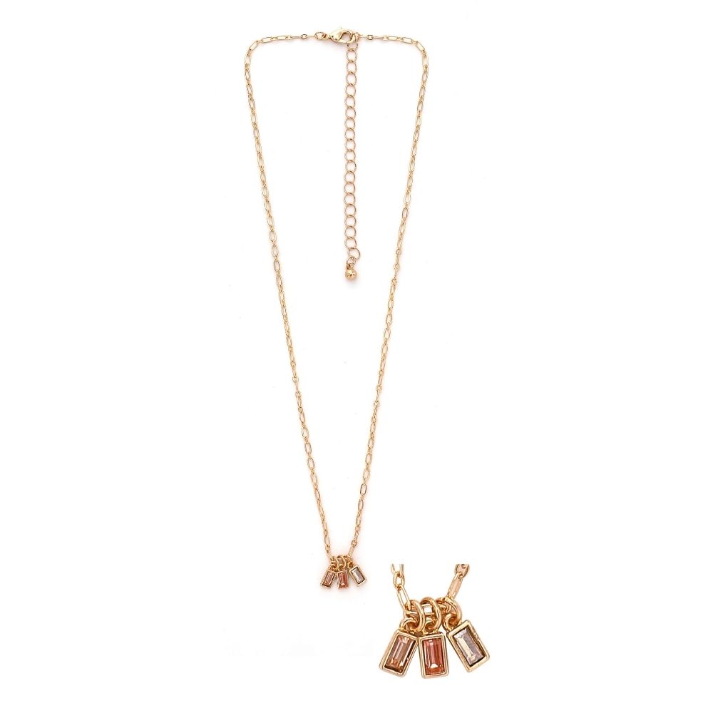 GOLD & EARTHTONE BAGUETTE CRYSTAL CHARM NECKLACE