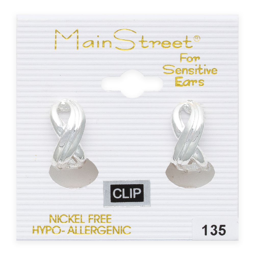 Introducing the charming allure of the Mainstreet #135 Clip earrings, an exquisite addition to any jewelry collection. These clip-on treasures are carefully crafted with a unique intertwined design, creating a dance of light and shadow that highlights the polished silver-tone finish. Painstaking attention to detail is evident in each twist and turn, embodying a timeless elegance.