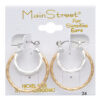 Introducing the Mainstreet #26 Hoop Earrings – a symphony of style and comfort for the fashion-savvy individual. These exquisitely crafted hoops feature a lustrous silver tone complemented by a trio of gold-tone rings, offering a modern twist on a classic design. Each earring is meticulously fashioned to cater to those with sensitive ears, ensuring that elegance does not compromise comfort.