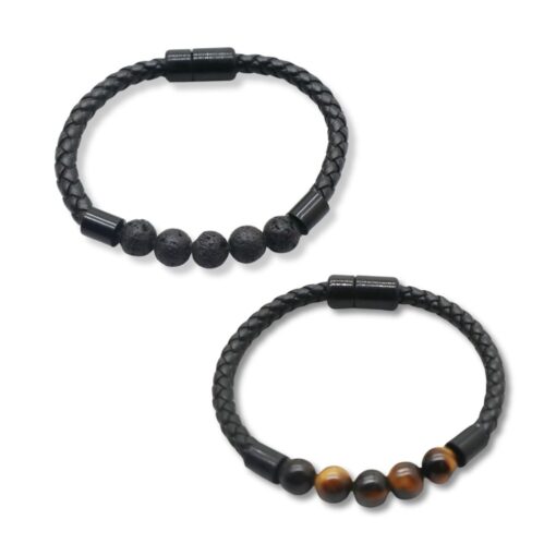 MEN’S BRAIDED LEATHER CORD WITH STONES MAGNETIC BRACELET. BLACK, BROWN. SOLD IN SETS OF 2 ONLY.