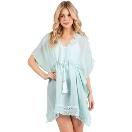 MINT CROCHET TRIM FRONT DRAWSTRING COVER-UP / TUNIC