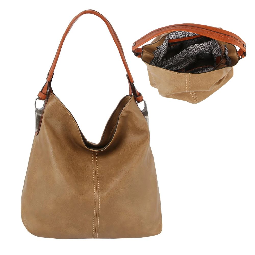 MOCHA LARGE BROWN STRAP HOBO. 15.4X13.8X5.4