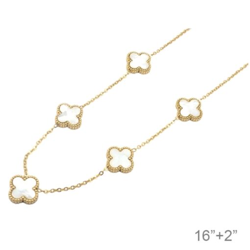 MOTHER OF PEARL GOLD-PLATED STAINLESS-STEEL CLOVER STATION LINK NECKLACE