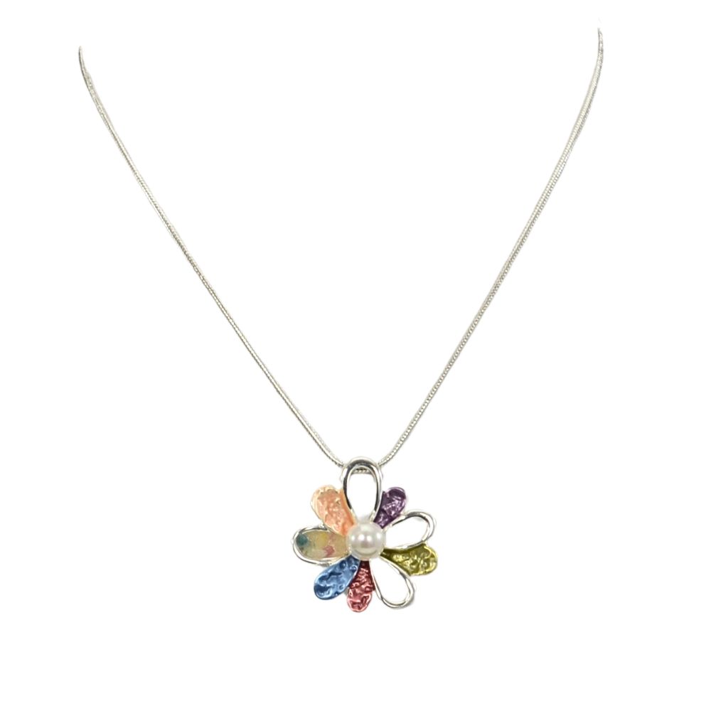 MULTI COLOR ENAMEL & PEARL FLOWER PENDANT