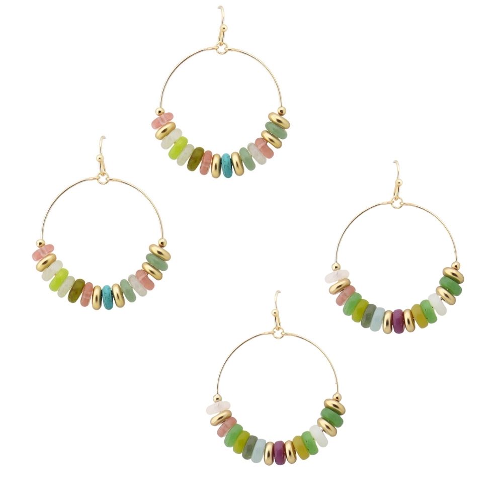 MULTI COLOR STONE BEAD HOOP PIERCED EARRINGS. LT. MULTI, MULTI. SOLD IN SETS OF 2 ONLY.