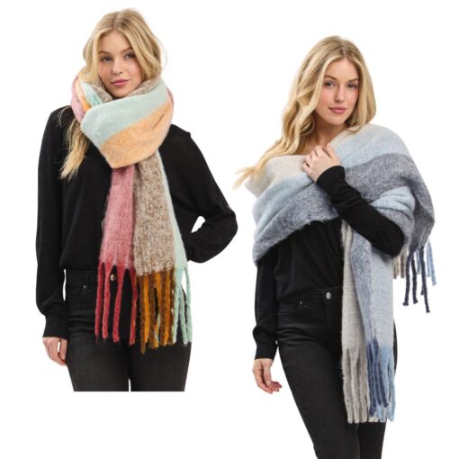 MULTI COLOR STRIPED CHUNKY SCARF. BRIGHT/MULTI, BLUE/MULTI. SOLD IN SETS OF 2 ONLY