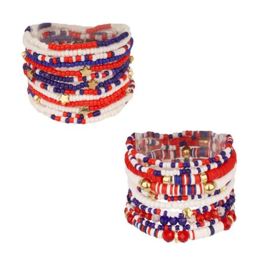 PATRIOTIC 10 STRAND SEED BEAD STACKABLE BRACELETS. SOLD IN SETS OF 2 ONLY