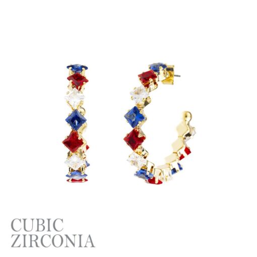 PATRIOTIC RED, WHITE, & BLUE CZ HOOP EARRING. SOLD IN SETS OF 2