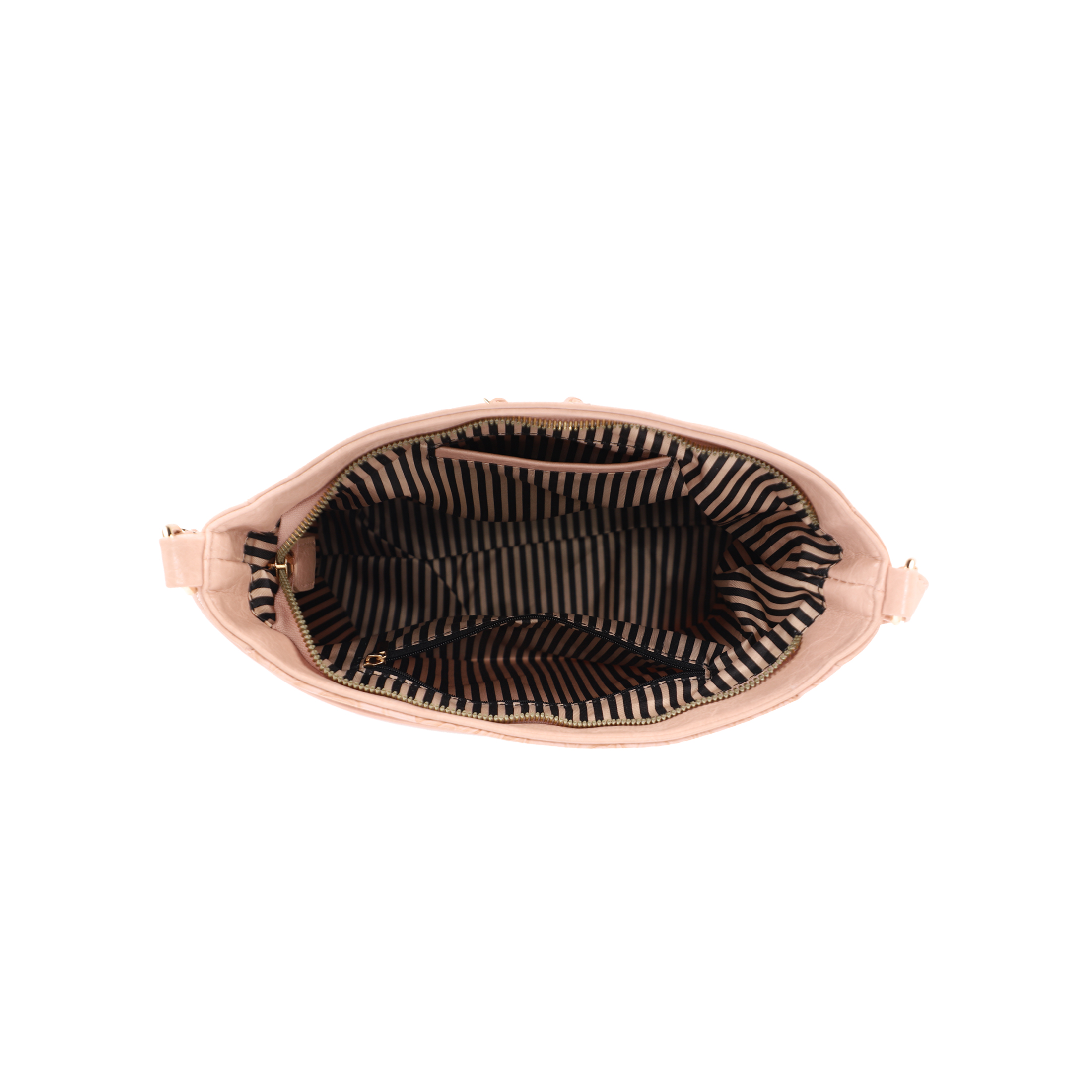 PINK FLORAL TOOLED CROSSBODY BAG. 12X10.25X4.25. SEE 29100 FOR MORE COLORS