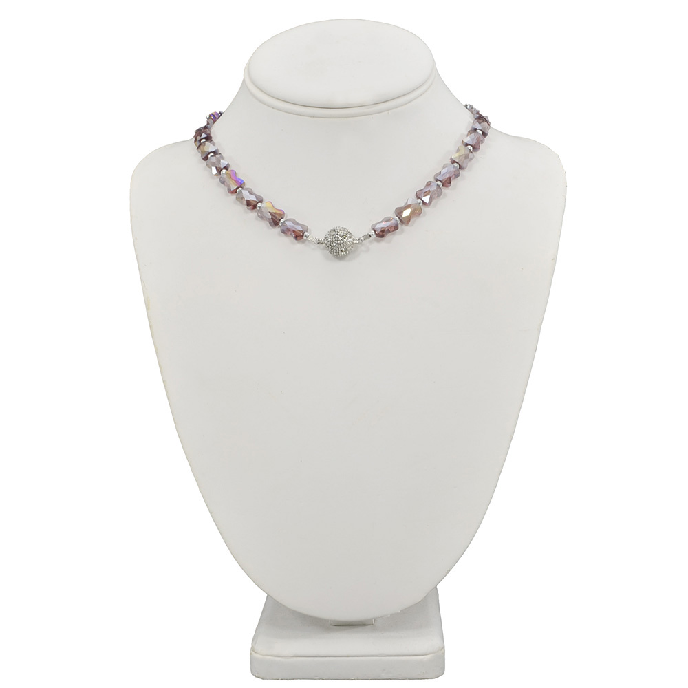 PURPLE AB GLASS BEAD NECKLACE WITH DECORATIVE MAGNETIC CLASP