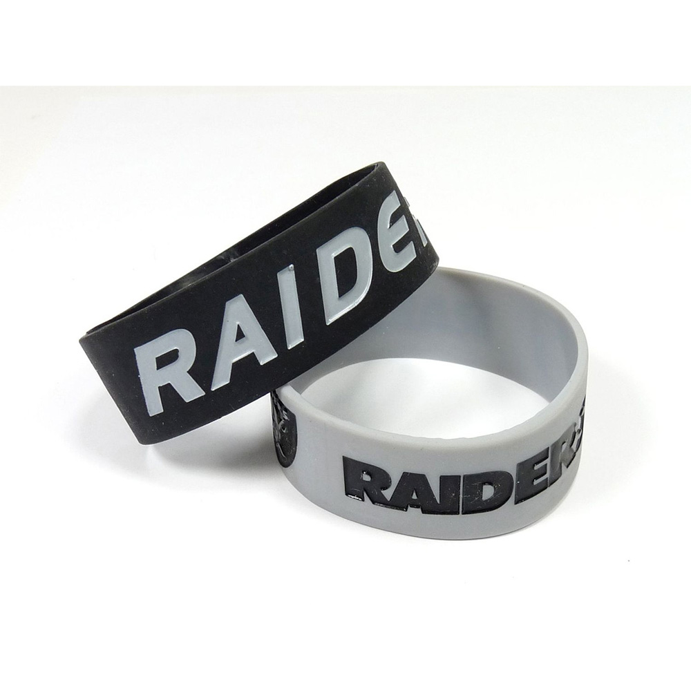 RAIDERS LICENSED SILICONE WIDE BRACELETS SET. 2 CARD PACKS (4 BRACELETS TOTAL)