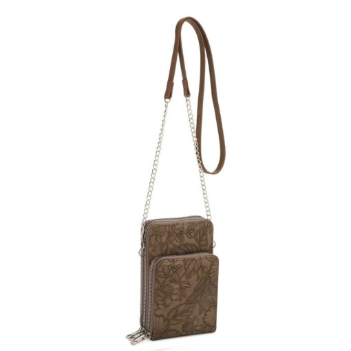 STONE TOOLED 3 COMPARTMENT SMALL CROSSBODY. 4.5x 7.4x 2.5